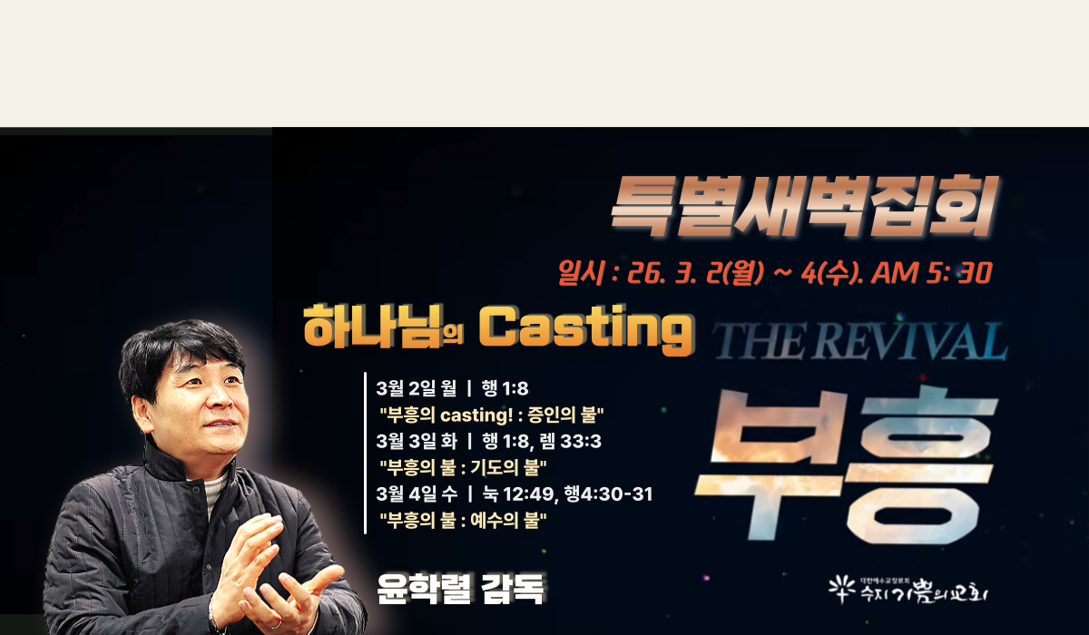 구분 시간 장소 새벽예배 월-금 새벽 5시 30분 1층 그레이스홀(동계)... Read More →